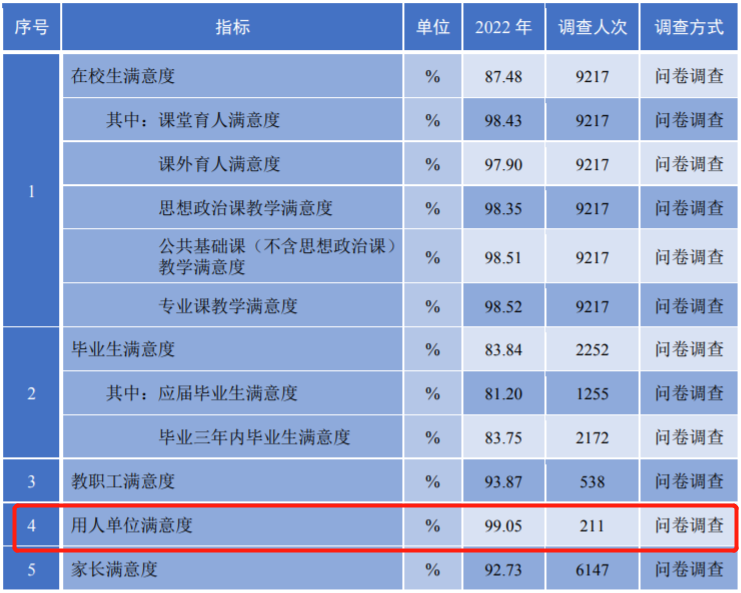 2022年用人单位满意度调查(数据来源:广东省教育厅2022年满意度调查平台)